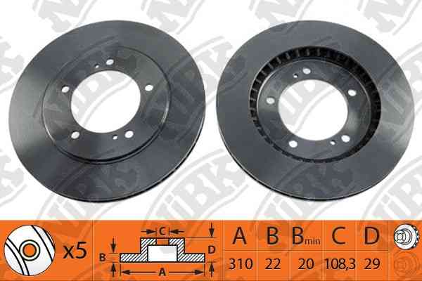 Размеры (описание): V310,T22, Holes 5, H29, D108.3,